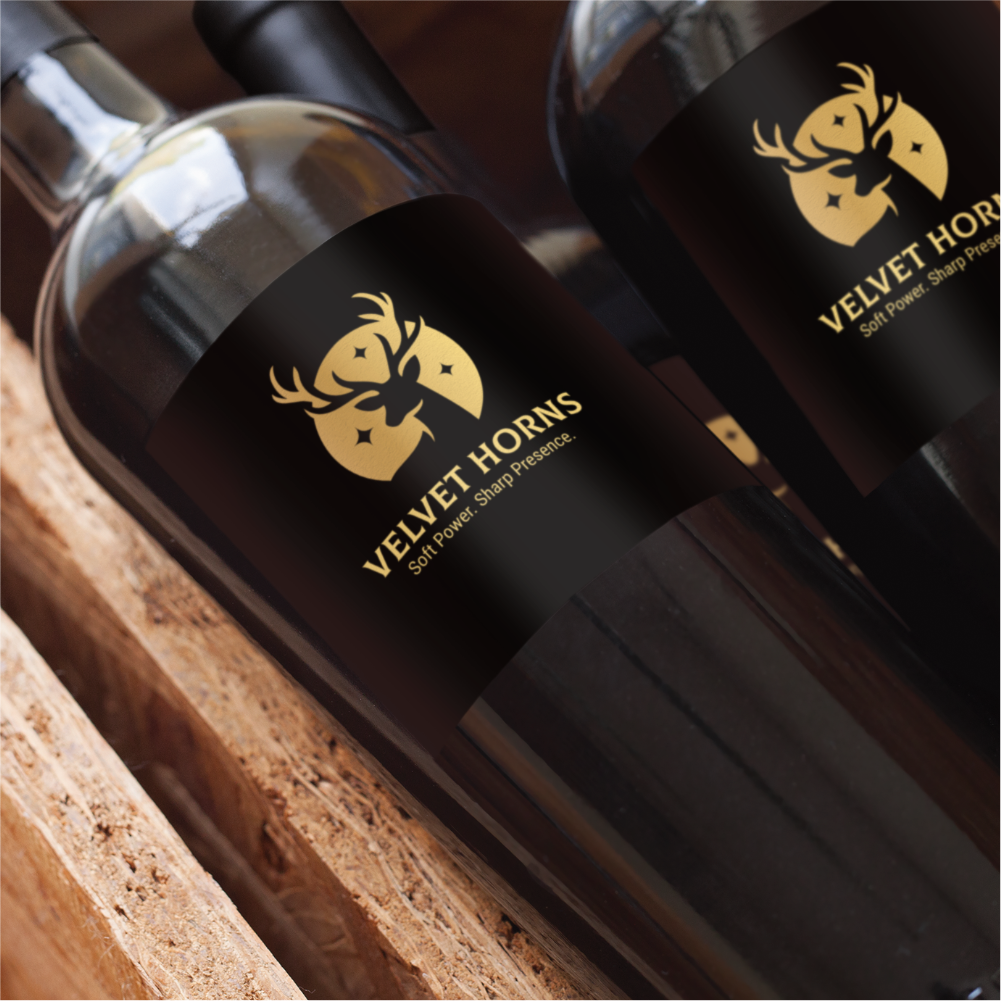 This elegant logo features a stylized golden deer head framed by a celestial circle, evoking grace, strength, and quiet dominance.